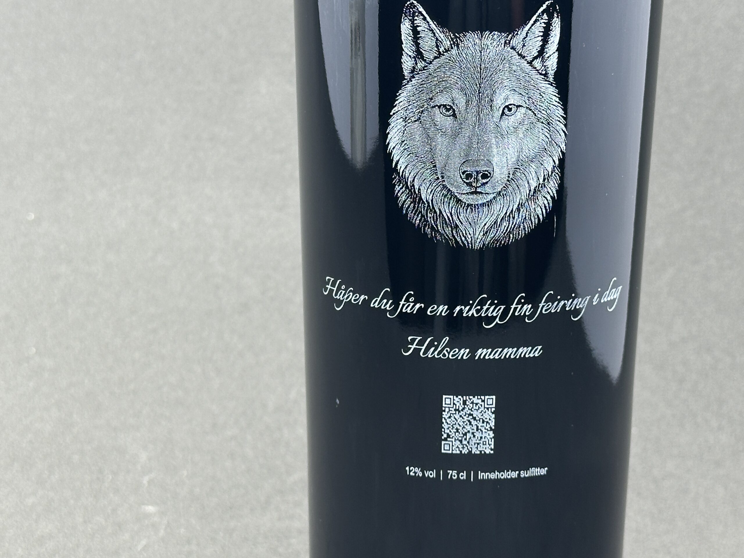 Bevarer det viktige: Vi sørger for at all lovpålagt og nødvendig informasjon, som vinnavn og alkoholprosent, alltid er integrert i designet. Flasken beholder sin profesjonelle identitet, selv med et personlig preg.